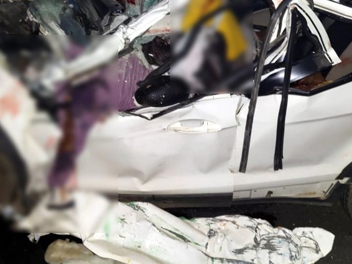 All the occupants of the car died on the spot after the accident and all the bodies were trapped in the wrecked car. The car was cut with a cutter and after a great effort all the bodies were removed from the car.