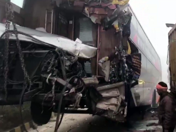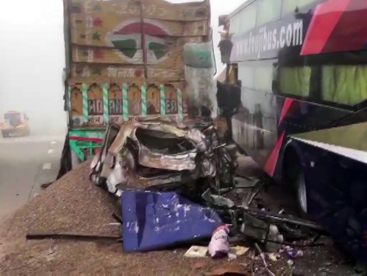 Some people in a car from Lucknow in Uttar Pradesh were going to visit Balaji. At least six people have been killed in a serious accident between a car and a truck around 1pm. The accident was so horrific that the wrecked car's body was cut by a cutter and the trapped bodies were pulled out. The accident took place on the Lucknow-Agra Express Highway in Kannauj district of Uttar Pradesh.