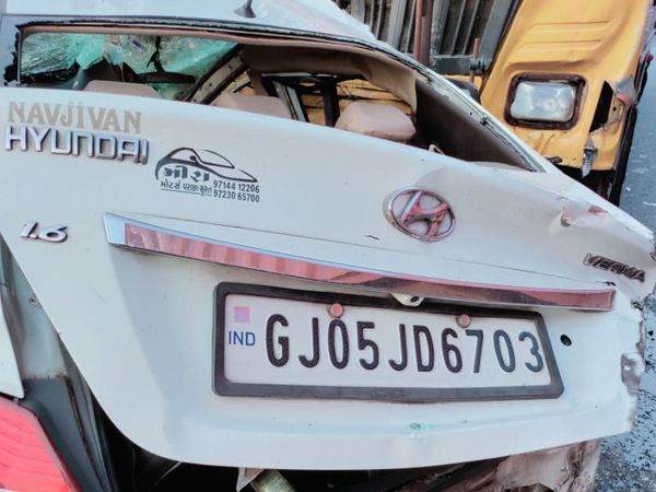 Three youths were killed on the spot in the Gozari incident. The driver lost control of the vehicle after falling asleep, jumped the car divider and reached the wrong side and got lost with a passing truck. The three youths who died in the accident were returning to Surat from Saurashtra after serving Koro patients.