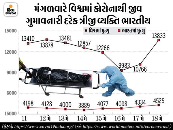 However, new case statistics in the country may provide some relief. As many as 2 lakh 67 thousand 44 new cases were registered on Tuesday, while 3 lakh 89 thousand 566 people were also cured, bringing down the number of active cases by 1 lakh 27 thousand 109.