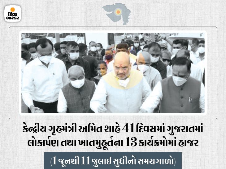 Union Home Minister Amit Shah was present at a total of 13 Lokarpan and Khat Muhurat events in Gujarat from June 1 to July 11.